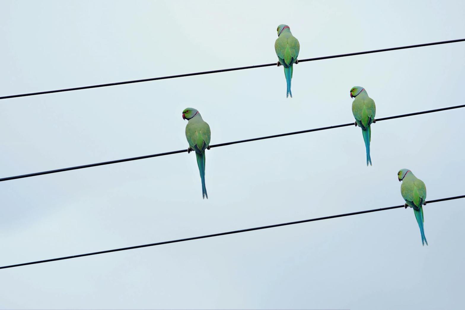 They huddle on the wires,