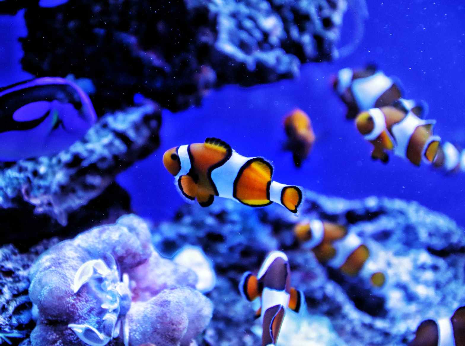 Five glass fish flitter past
