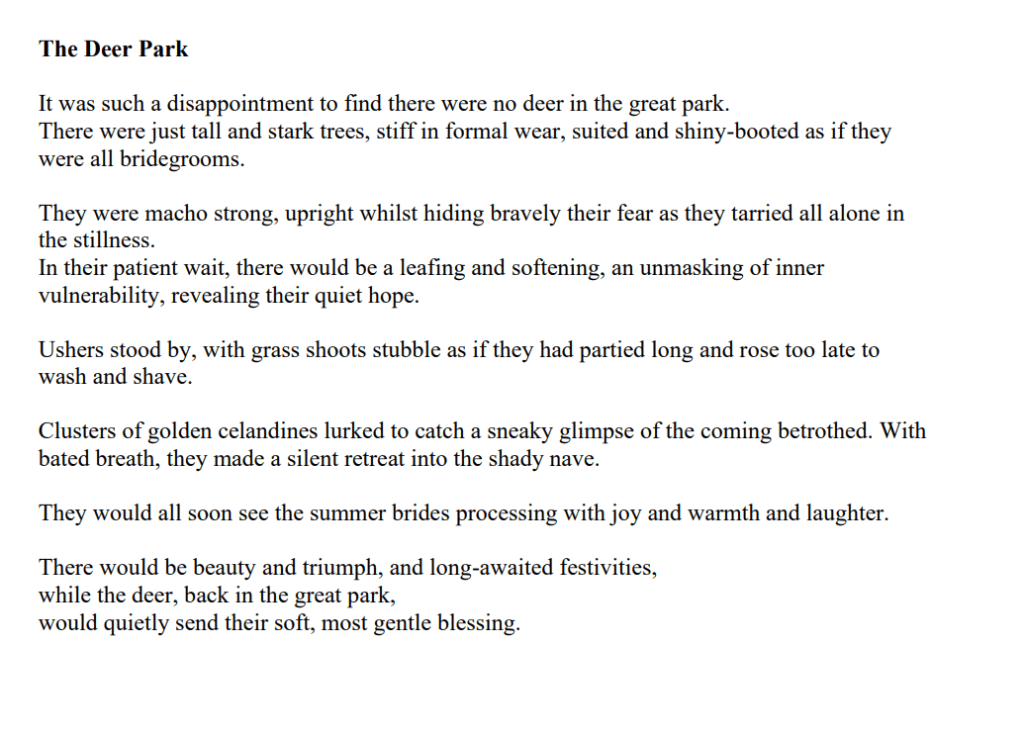 Wendy Westley was a successful nurse, midwife and therapist for many years in the UK. She now writes short stories and poetry, and has been published in several poetry journals.
